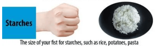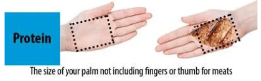 Each meal = 1 palm of protein + 1 fist of carbs